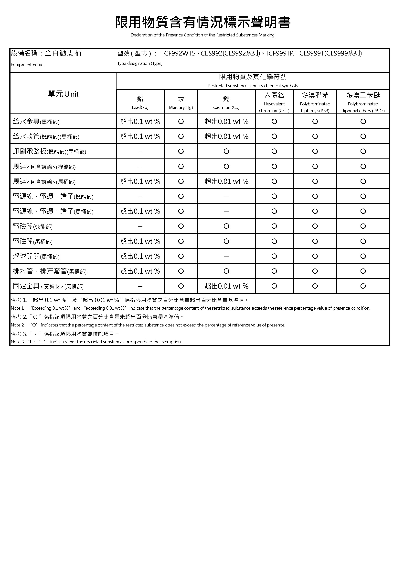 TOTO 聲明