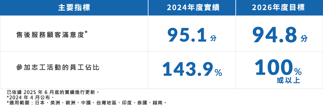 我們的目標是成為一家使員工可以聚集在一起、安心自在地工作,獲得成功並迎接挑戰的公司。我們也舉辦各式活動來促進多元化並實施工作風氣的改革,以創造一個所有員工都可以發揮所長的工作場域。此外,我們也與經銷夥伴合作,以從事人權和勞工、安全和健康以及環境等領域的企業社會責任議題。